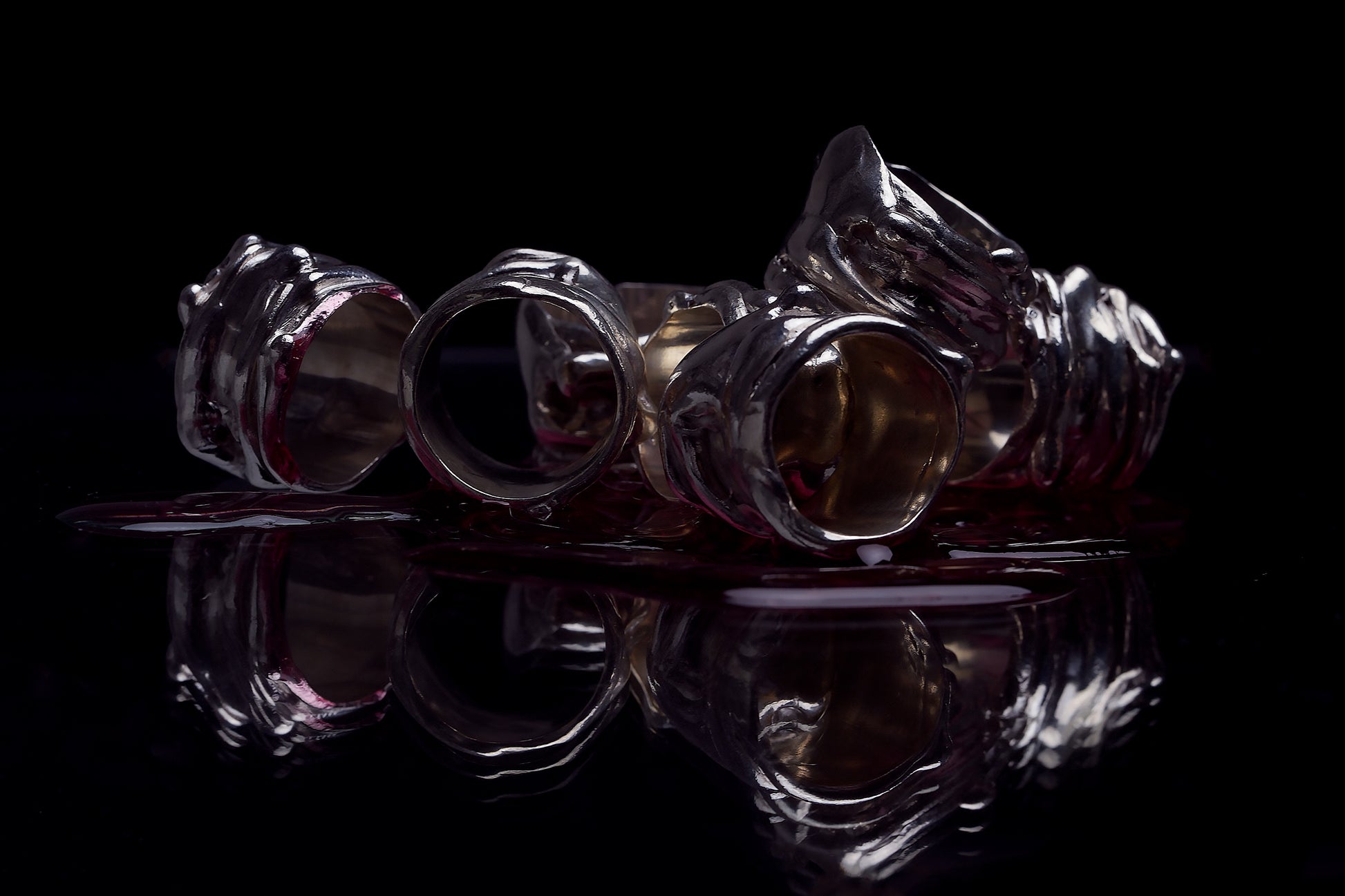 El anillo más imponente de la colección. Ancho, sólido y con la textura orgánica característica de Bibbe, parece fluir y detenerse a la vez. Fundido en plata esterlina, su volumen envuelve el dedo con naturalidad, combinando fuerza, elegancia y una sensación casi líquida en la forma. Una pieza que concentra toda la energía del universo Bibbe en un solo gesto.