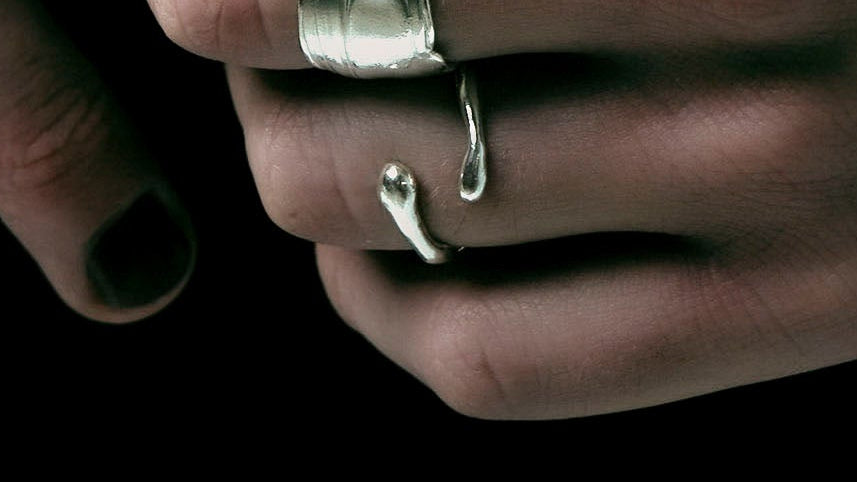 El Double Droplet Ring combina suavidad y movimiento en una forma que rodea el dedo con naturalidad.