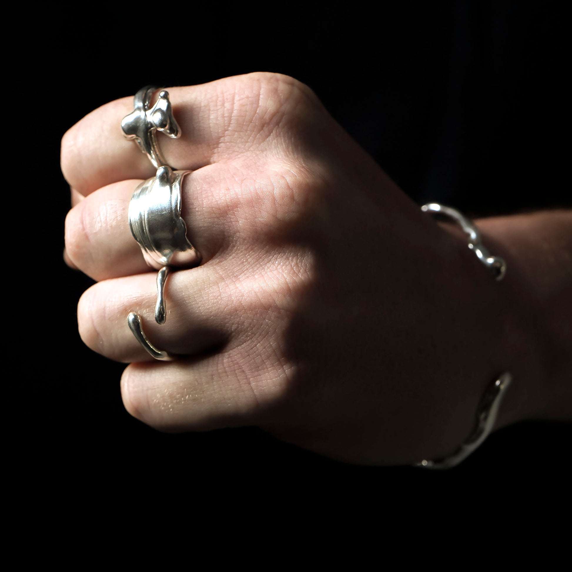 Fundido en plata esterlina, refleja la esencia fluida de Bibbe: equilibrio, ligereza y conexión.